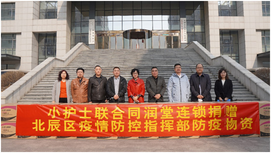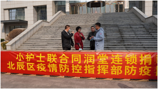 3月10日上午,捐贈(zèng)儀式在北辰區(qū)政府舉行,出席儀式的有北辰區(qū)副區(qū)長(zhǎng)馬希榮、區(qū)防疫工作指揮部組長(zhǎng)竇百鳴、區(qū)防疫工作指揮部辦公室主任楊肖鴻、小護(hù)士公司董事長(zhǎng)楊印江、同潤(rùn)堂連鎖總經(jīng)理?xiàng)顟蚜、小護(hù)士公司董事會(huì)秘書董曉光、小護(hù)士公司人資行政總監(jiān)方立勝。