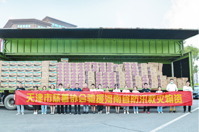 7月28日上午,董事長楊印江攜公司員工,趕往支援車輛現場,配合天津慈善協(xié)會進行物資配送及裝車工作。物資裝載完畢后,統(tǒng)一送往河南周口市災區(qū)。