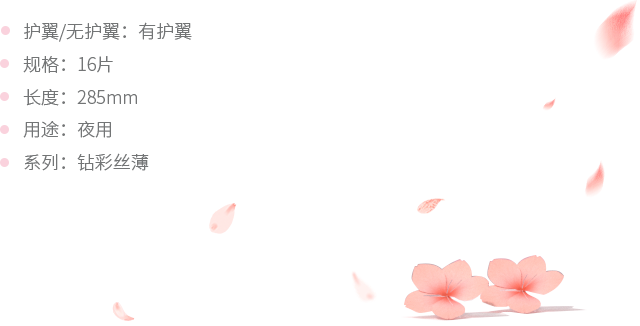 鉆彩絲薄285mm16片棉柔夜用衛(wèi)生巾