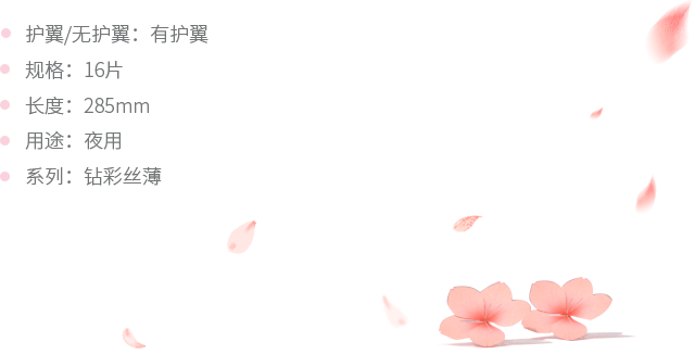 鉆彩絲薄285mm16片干爽夜用衛(wèi)生巾